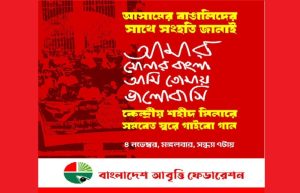 আয়োজনে আসামসহ ভারতের সকল বাঙালিদের ভাষা ও সংস্কৃতি চর্চার অধিকারের সমর্থনে সর্বস্তরের জনগণকে একতাবদ্ধ থাকার আহ্বান জানান ফেডারেশনের সভাপতি বিশিষ্ট আবৃত্তিশিল্পী মেহেদী হাসান। এসময় অন্যান্যের মধ্যে বিশিষ্ট অভিনেতা ও মডেল আসাদুজ্জামান আসাদ, সাবেক যুগ্ম সচিব বিশিষ্ট নাট্যকার গোলাম শফিক ও আবৃত্তিকার শামসুদ্দোহা পাটোয়ারী উপস্থিত ছিলেন।