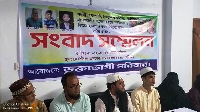 ঢাকার কেরাণীগঞ্জে একটি মসজিদের ভেতরে খতিবের ওপর হামলার অভিযোগ তুলে সংবাদ সম্মেলন করেছে এক ভুক্তভোগী পরিবার।