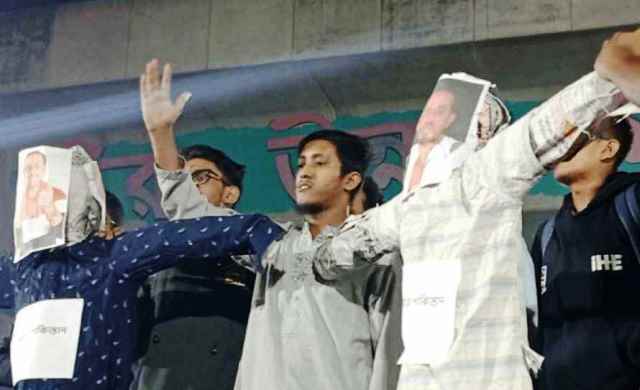 বুধবার (১০ ডিসেম্বর) রাত ৯টা ১৫ মিনিটে রাজু ভাস্কর্যের পাদদেশে কুশপুত্তলিকা দাহ করেন শিক্ষার্থীরা।