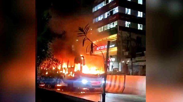 একটি ভিডিওতে দেখা যায়, দোলাইরপাড় ইয়ানজিন রেস্তোঁরার সামনে এক্সপ্রেসওয়ের লেনে বাসটি আগুনে জ্বলছে। ভিডিওতে বলতে শোনা যায়, বাসটিতে ‘অগ্নিসংযোগ’ করা হয়েছে।