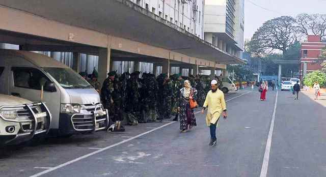 সচিবালয়ের ১ নম্বর ভবনের সামনে এসএসএফ, পিজিআর, পুলিশ, র্যাব এবং অন্যান্য গোয়েন্দা সংস্থার সদস্যরা অবস্থান নিয়েছেন। ভবনের এলাকা যানবাহনমুক্ত করা হয়েছে এবং প্রবেশাধিকার সীমিত রাখা হয়েছে। এছাড়া অন্যান্য ভবনগুলোতে মন্ত্রীদের নামফলক বসানো হয়েছে।