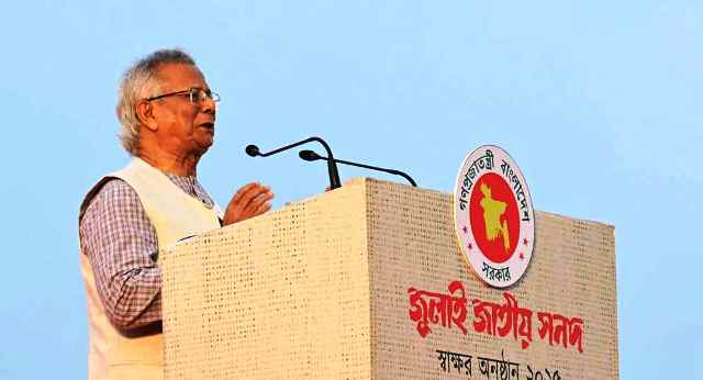 জুলাই সনদে স্বাক্ষরের মাধ্যমে এক নতুন বাংলাদেশের সূচনা হয়েছে বলে মন্তব্য করেছেন অন্তর্বর্তী সরকারের প্রধান উপদেষ্টা ড. মুহাম্মদ ইউনূস।
