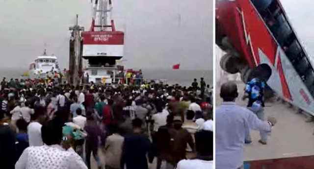 রাজবাড়ীর দৌলতদিয়া ঘাটে ফেরিতে ওঠার সময় নিয়ন্ত্রণ হারিয়ে যাত্রীসহ একটি বাস পদ্মা নদীতে পড়ে গেছে।