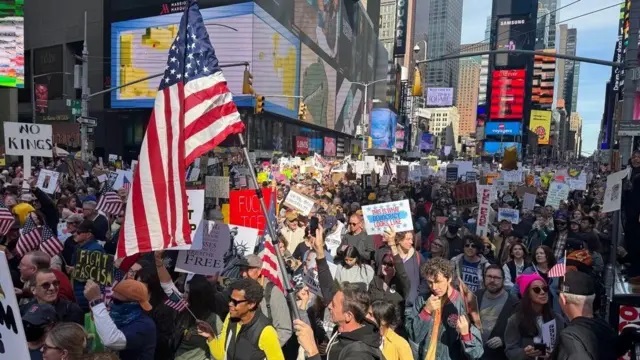 নিউইয়র্কে টাইম স্কোয়ারের সামনের সমাবেশে হাজার হাজার মানুষ অংশ নিয়েছে।