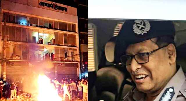 প্রথম আলোর ক্ষতিগ্রস্ত ভবন পরিদর্শন করেছেন বাংলাদেশ পুলিশের ইন্সপেক্টর জেনারেল বাহারুল আলম।