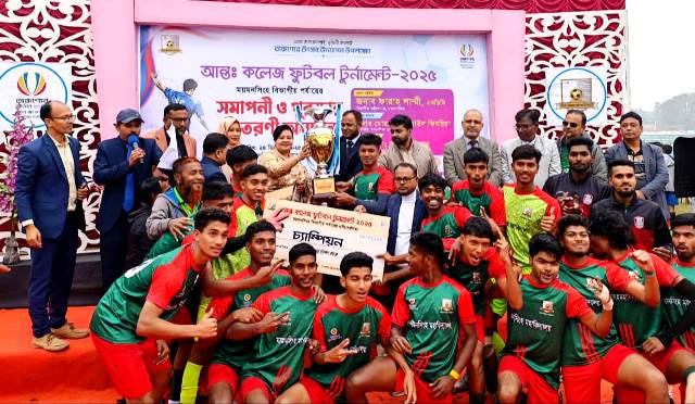 তারুণ্যের উৎসব উদযাপন উপলক্ষ্যে ময়মনসিংহ জেলা স্টেডিয়ামে শেষ হলো আন্তঃকলেজ ফুটবল টুর্নামেন্ট ময়মনসিংহ বিভাগীয় পর্যায়ের প্রতিযোগিতা। ফাইনালে জামালপুর জেলার বকশিগঞ্জ সরকারি কিয়ামত উল্লাহ কলেজকে ৪-০ গোলে হারিয়ে দ্বিতীয়বারের মত বিভাগীয় শিরোপা ঘরে তুললো ময়মনসিংহ মহাবিদ্যালয়।