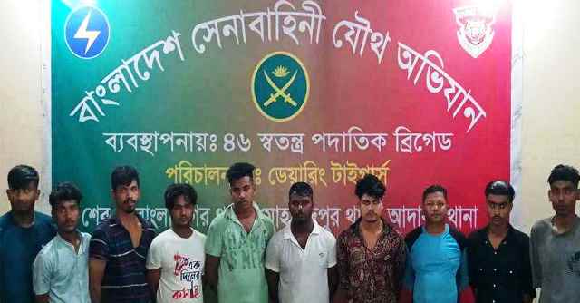 আটক ব্যক্তিরা হলেন শপন (৩০), আল আমিন (২২), শাকিল (২৫), মুনতাজ (২৫), মুক্তার (২৩), রিয়াজ (২১), ইমন (২০), লিমন (২০), আকতার (২০) এবং গ্রুপের অন্যতম নেতা নায়েম (২২)।